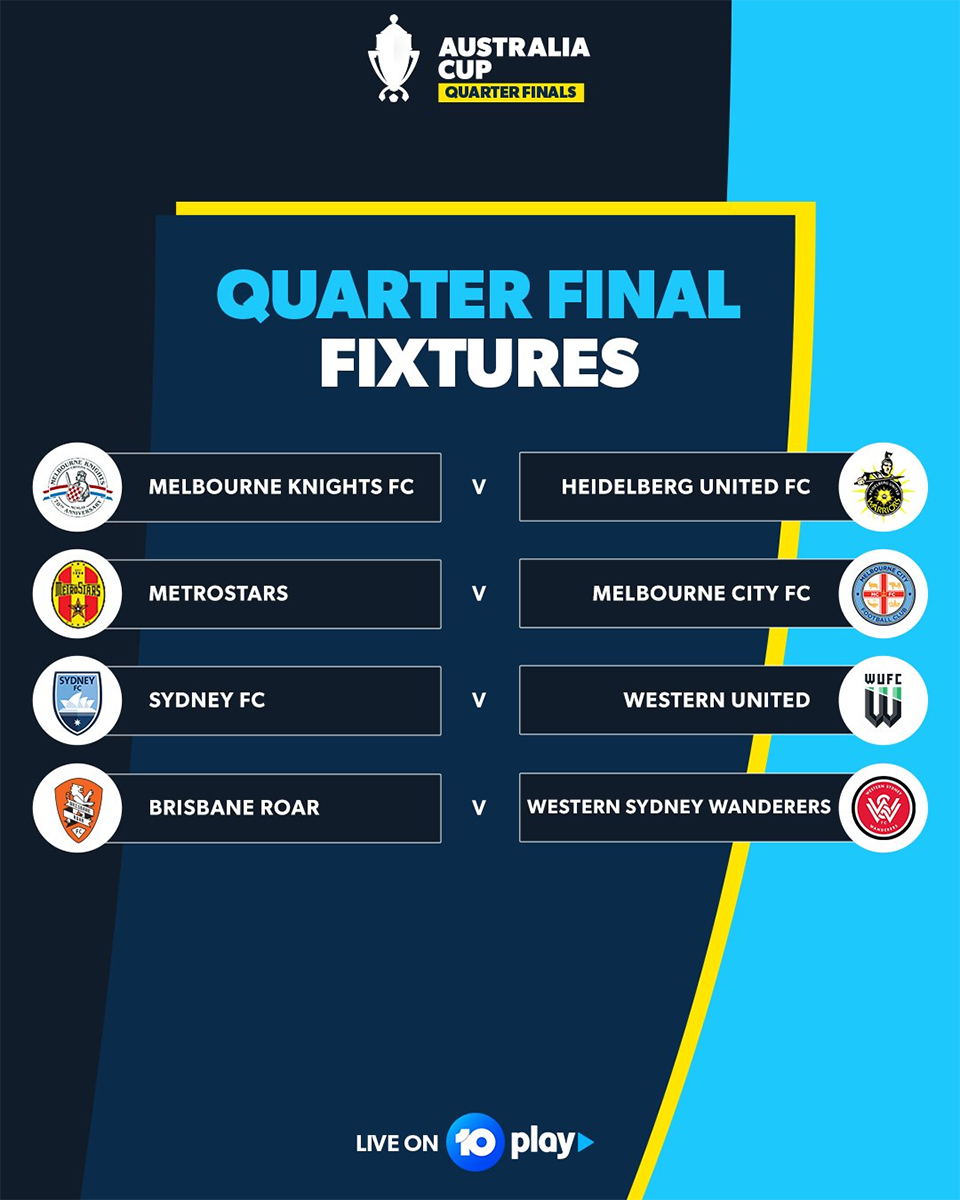 À l’exception des Wanderers, tous les autres vainqueurs en huitièmes de finale l’ont été en préservant ses cages inviolées. Sans Florin Bérenguer, encore en préparation, Brisbane Roar a été à la hauteur contre le Sydney United 58 (5-0) ; Melbourne City n’a pas fait dans la demi-mesure contre Wellington Phoenix (3-0) avec Jamie Maclaren auteur d’un doublé. Autres représentants de A-League, Sydney FC n’a pas flanché contre le récent champion de la fédération de Nouvelle-Galles du Sud, l’APIA Leichhardt (2-0) alors que Western United en a fait de même face à Gold Coast Knights (2-0). Le petit poucet de la compétition, l’Inter Lions, pensionnaire de l’équivalent de la troisième division, s’est quant à lui fait éliminer dans le temps additionnel de la seconde mi-temps par North Eastern MetroStars.