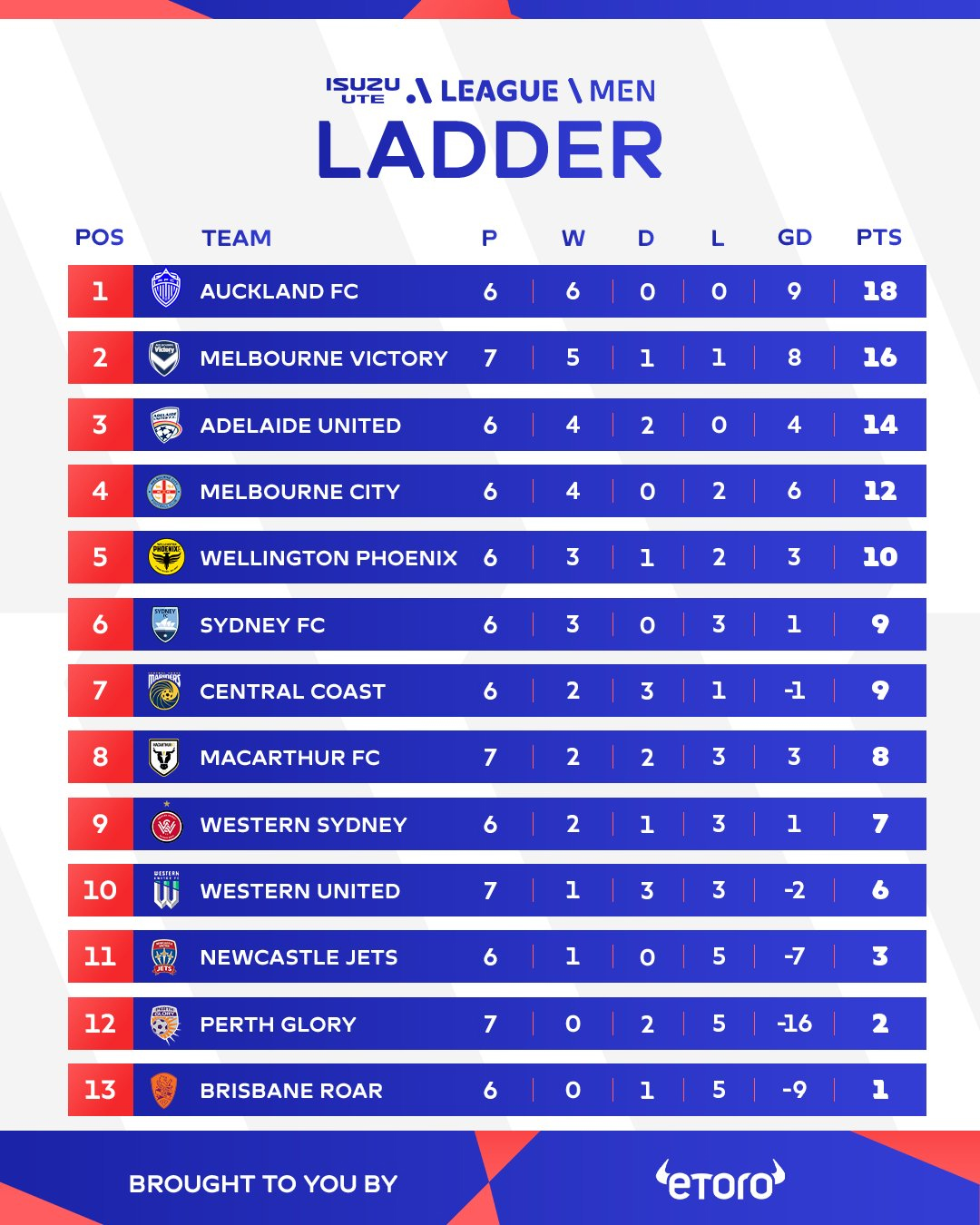 Auckland continue son impressionnant parcours, décrochant une nouvelle victoire face à Wellington, bien qu’ayant enfin encaissé un but. Pendant ce temps, Sydney FC poursuit son alternance de victoires et défaites.