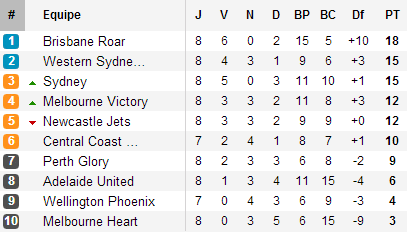 S’il y a eu trois résultats nuls, il y aura donc eu deux victoires extrêmement précieuses puisque synonyme de bonne affaire. La première et pour Brisbane qui s’impose sur la plus petite des marges devant Perth et s’envole en tête du classement, portant son avance sur les Wanderers à trois points. La seconde est pour Sydney.