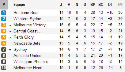 Derrière, la belle affaire est pour Perth qui se prépare de la meilleure des manières au retour de William Gallas en écrasant des Heart désespérants (même si enfin victorieux en ouverture de la 15e journée – nous en reparlerons la semaine prochaine) et prenant ainsi la cinquième place, précédant Newcastle et Sydney à la différence de but.