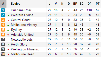 Conséquence de cette victoire des Wanderers, le succès des Mariners à Brisbane comptera finalement pour du beurre. Le dernier champion termine troisième et conclut ainsi la phase régulière.