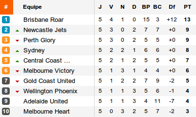 Reste que malgré un nul concédé, Brisbane grappille un point supplémentaire sur ses poursuivants. Car derrière, Perth est tombé à Newcastle sur un (superbe) doublé de Jeremy Brockie. Les Jets profitent de cette victoire pour revenir sur les Glory, à quatre longueurs des Roar.