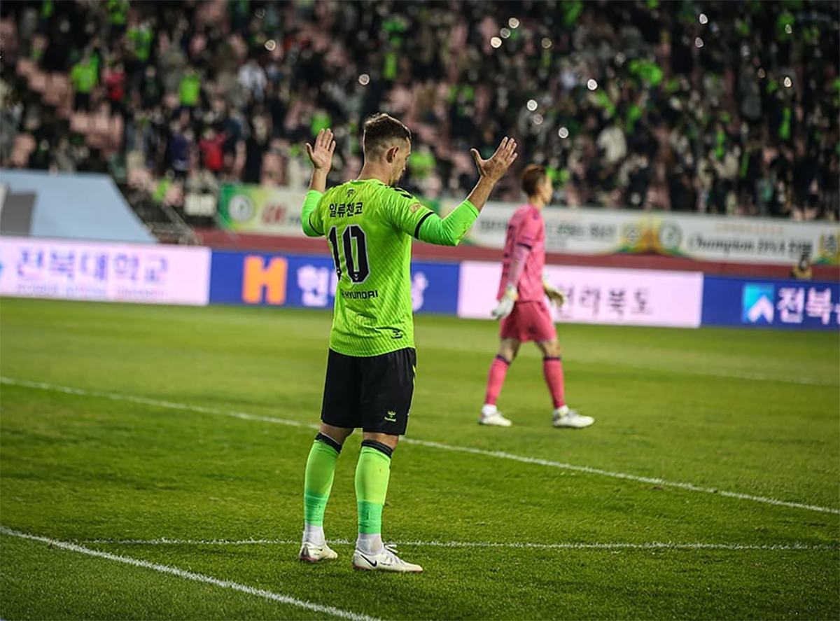 Le match que tout le monde attendait et qui devait permettre à Jeonbuk ou Ulsan de se rapprocher considérablement du titre. Dans un match pas si exceptionnel dans le jeu, mais incroyable dans son scénario, c’est Jeonbuk qui s’impose au bout du bout avec un but d’Iljutcenko sur un magnifique ballon de Takahiro Kunimoto (3-2). Avant ça, Oh Se-un s’était vu un but refusé pour hors-jeu après le VAR avant que Song Min-kyu ne donne l’avantage aux Green Warriors à la suite d’une erreur de Jo Hyeon-woo. Avant la pause, Lim Jong-eun égalisait sur corner pour Ulsan. En seconde période, alors que les Tigres dominaient largement leur adversaire, Ryu Jae-moon venait décocher une superbe reprise de l’extérieur du pied pour donner l’avantage aux locaux avant que Lee Chung-yong n’égalise une nouvelle fois après un corner mal dégagé par la défense de Jeonbuk. Mais Ulsan étant Ulsan, il fallait bien repartir de Jeonju avec une défaite et c’est ce qui s’est produit à la dernière seconde.