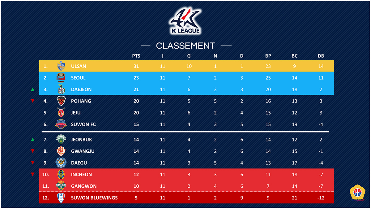 Retour sur la douzième journée de K League qui voit Ulsan poursuivre son cavalier seul et Seoul s’affirmer comme leader de la résistance.