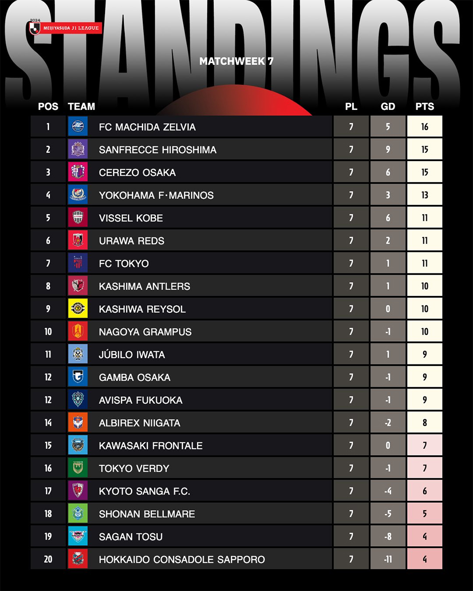 Un trio de tête en forme, la crise à Shonan, l’espoir à Sapporo, voici le bilan en cinq points des cinquième, sixième et septième journées de J1 League.