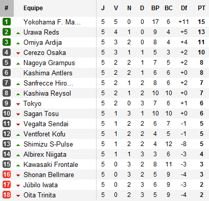 Derrière le rythme effréné des Marinos, Urawa et Omiya semblent être les seuls à pouvoir suivre. Si bien que les écarts commencent à se creuser.