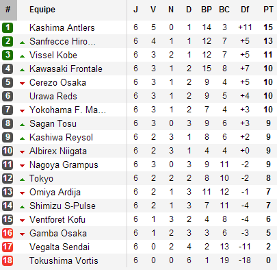 Reste tout de même une bonne surprise en ce début de J-league : le Visse Kobe. Emmené par la machine à but Marquinhos, auteur de son 3e but en six matchs, le Visse punit Omiya et reste solide troisième à quatre point du leader chez qui il se rendra dans 2 semaines après avoir reçu la lanterne rouge Tokushima.