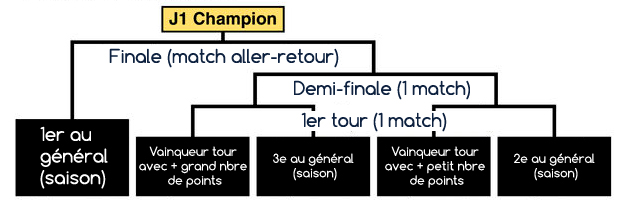 Dans ce nouveau format pour les play-offs, si une équipe remporte l’une des deux phases et termine avec le plus grand nombre de points, elle s’assure une place en finale. De même, si une équipe rempli deux critères qualifiant au premier tour, elle se qualifie directement pour la demi-finale.