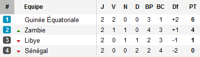 Après la fin de la première journée, les groupe A et B lançaient la seconde qui s’annonçait déjà décisive pour des outsiders comme le Sénégal. Battus par la Zambie en ouverture, les Lions de la Téranga n’avait d’autre choix que celui de s’imposer devant le pays organisateur : Guinée Equatoriale. Las, malgré une égalisation dans les derniers instants de Moussa Sow, le Sénégal trouve le moyen de s'incliner dans les arrêts de jeu sur une frappe surpuissante de Kily Álvarez. Cette défaite élimine les Lions de la Téranga et, surprise générale, qualifie le Nzalang Nacional pour les quarts de finale. Reste donc une place dans ce groupe à disputer entre la Zambie et la Libye lors de la dernière journée. Dos à dos lors de leur opposition, Chipolopolos et Chevaliers de la Méditerranée peuvent encore se qualifier même si la Zambie peut se contenter d’un résultat nul.