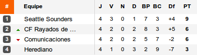 Irrésistible jusqu'ici Seattle se laisse surprendre chez lui par Herediano. Avec ce premier succès, les costaricains se relancent dans la course à la qualification en revenant à trois points du duo Monterrey – Comunicaciones. Les Rayados ont tranquillement écarté les guatémaltèques et recevront Herediano pour une demi-finale de groupe la semaine prochaine.