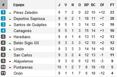 Derrière, la dixième journée aura été celle du retour du dernier finaliste Herediano. Les Rojiamarillos s’imposent à Puntarenas et reviennent à trois points de Cartaginés à une semaine de recevoir le second du championnat puis d’aller rendre visite au troisième.