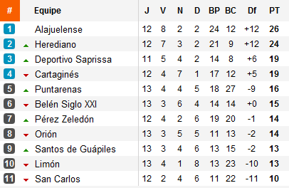 A noter enfin, le carton de Pérez Zeledón devant Puntarenas (7-1), surprise de la quatorzième journée.
