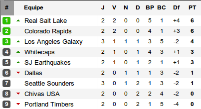 A noter les premiers succès de San Jose grâce à l'inévitable Chris Wondolowski qui s'impose à Dallas et de Toronto, tranquille vainqueur des Timbers toujours dans l'attente d'un premier point. Enfin, l'un des principaux rivaux locaux de Portland, les Sounders, concèdent un nouveau résultat nul chez eux devant Houston et restent ancrés en queue de conférence Ouest.