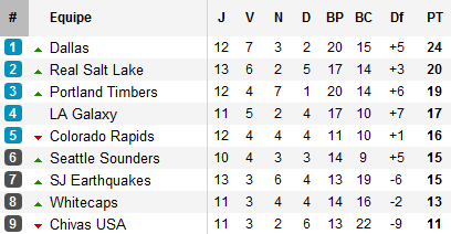 A l’Ouest, la semaine 12 était celle de la première manche de la Cascadia Cup entre Vancouver et Portland deuxième match de l’épreuve après le 1-1 entre Sounders et Timbers mi-mars. Entre deux tours de finale du Canadian Championship qui pourrait permettre aux Whitecaps de décrocher une place en Champions league après le nul ramené de Montreal, la stratégie de Vancouver, attendre les Timbers pour mieux les contrer, a failli être payante. Par deux fois Vancouver aura mené au score (avec notamment un superbe coup-franc de Camillo et un non moins superbe but signé Koffie) mais un ultime but de Trencito Valencia (son premier avec les Timbers), ramènera Portland, au grand dam de Whitecaps qui réclameront une main du jeune colombien. Autre grand match de la semaine, le choc Seattle – Dallas qui tourne à l’avantage des Sounders malgré un but exceptionnel de Michel pour les texans. A signaler également, le coup de fusil signé Chávez pour San José qui permet aux Earthquake de sauver le nul à domicile devant Colorado et le carton des Royals face à un Chivas totalement dépassé.