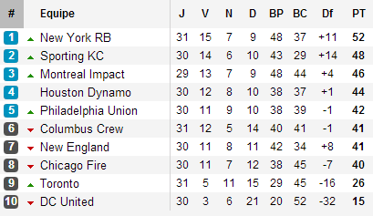 A l’Est, la situation est tout aussi dense. New York reste leader avec désormais quatre points d’avance sur le Sporting Kansas, tombé chez lui face à Philadelphie, six sur Montreal, accroché à Chicago. L’Impact dispose cependant de deux matchs de plus à disputer pour reprendre les Red Bulls. Derrière, entre Houston, quatrième et Chicago, huitième, ils sont cinq en quatre points pour deux places.