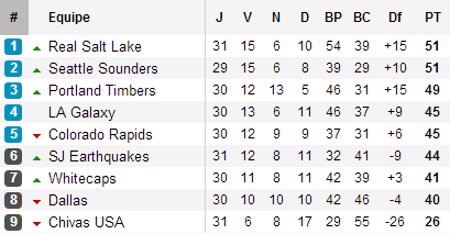 Car dans le même temps, le choc Seattle – New York, duel de leaders de conférence, se termine sur un match nul, Cahill répondant à Evans qui, comme le veut la tradition, n’arrange personne. Derrière Salt Lake et Seattle, Portland réalise la belle opération de la semaine. Les Timbers font tomber le Galaxy et reviennent à deux points de la tête de la conférence, plongeant le champion sortant dans la terrible lutte pour les play-offs (Los Angeles ne compte que cinq points d’avance sur Dallas, avant dernier de la conférence).