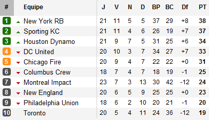 A l’Est, ce fut l’occasion pour les Red Bulls d’Henry de prendre les commandes. Deux succès, un premier sur Chicago, un second devant Philadelphie et New York profite du coup d’arrêt des deux leaders : le Sporting Kansas accroché par New England après une défaite à Houston, et DC United tombé à Columbus dans son seul match de la semaine. L’autre belle opération est pour Houston qui enchaîne les succès : un carton devant DC la semaine passée suivie de deux victoires supplémentaires face au Sporting et face à Montreal. Voilà les Dynamo à quatre points de New York.