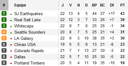 A l’Ouest, Los Angeles a réellement décolé. Après l’exceptionnel 5-3 à Portland, le Galaxy montre son cœur à Vancouver en remontant deux buts dans les dix dernières minutes avant de s’imposer tranquillement dans le Superclasico devant Chivas. Invaincus depuis quatre matchs, les hommes de Bruce Arena se rapprochent au classement. Ils ne sont plus désormais qu’à quatre points de Vancouver, dernier qualifié direct pour les play-offs. Devant eux, le Real Salt Lake reprend des couleurs devant Colorado, pendant que San José craque à Vancouver trois jours après avoir arraché un précieux succès devant Dallas qui de son côté enfonce encore plus des Timbers devenus plus mauvaise équipe de la ligue.