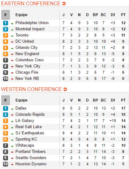 Du côté de l’Ouest, ils sont deux à enchaîner et à foncer sur la tête. Premier des deux, les Rapids qui continuent d’aligner les résultats positifs et reviennent fort sur un Dallas tombé à Vancouver. Pour cela, Colorado a disposé des Sounders qui, d’après leur coach, ont effectué le pire match de leur saison. Privé de Dempsey et Valdez, Seattle a longtemps galéré pour générer du danger sur les cages des Rapids, une seule véritable opportunité en première période et bien qu’ayant eu la possession, n’a rien pu faire face à l’efficacité des Rapids, symbolisée par leur facteur X, Jermaine Jones. Déjà omniprésent la semaine passée, l’international US ouvrait le score de la tête à la 20e minute et passait à deux doigts de doubler le score à deux reprises dans les 10 minutes suivantes. L’arrière garde des Sounders, son talon d’Achille, allait céder en seconde période, incapable de gérer les débordements et autres échappées de Badji et Gashi. Badji s’en allait offrir le but du 2-0 à Solignac d’entrée de second acte et si Gashi manquait un penalty (ou plutôt Frei maintenait les Sounders en vie), malgré la réduction du score d’un Jordan Morris toujours aussi intéressant, rien n’allait dans le sens des visiteurs qui cédaient une troisième fois en fin de rencontre sur un but hors-jeu du revenant Kevin Doyle. Cette victoire des Rapids, la quatrième en cinq matchs, leur permet de se rapprocher davantage de Dallas qui n’a plus qu’une longueur d’avance mais surtout de résister au retour du Galaxy.