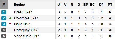 Dans le groupe B, le Brésil avait arraché sa première victoire devant le Venezuela, a arraché sa seconde devant le Chili (but d'Adryan à la 87e minute) et aura fini par chuter face au Paraguay malgré un but étrange inscrit par Lucas Piazon dont la frappe croisée a transpercé les filets (à voir dans les vidéos). L'autre favori de la compétition se reprend ainsi de sa surprenant défaite en ouverture face à la Colombie. Tout est extrêmement serré dans ce groupe avec le Chili également décidé à se mêler à la lutte.