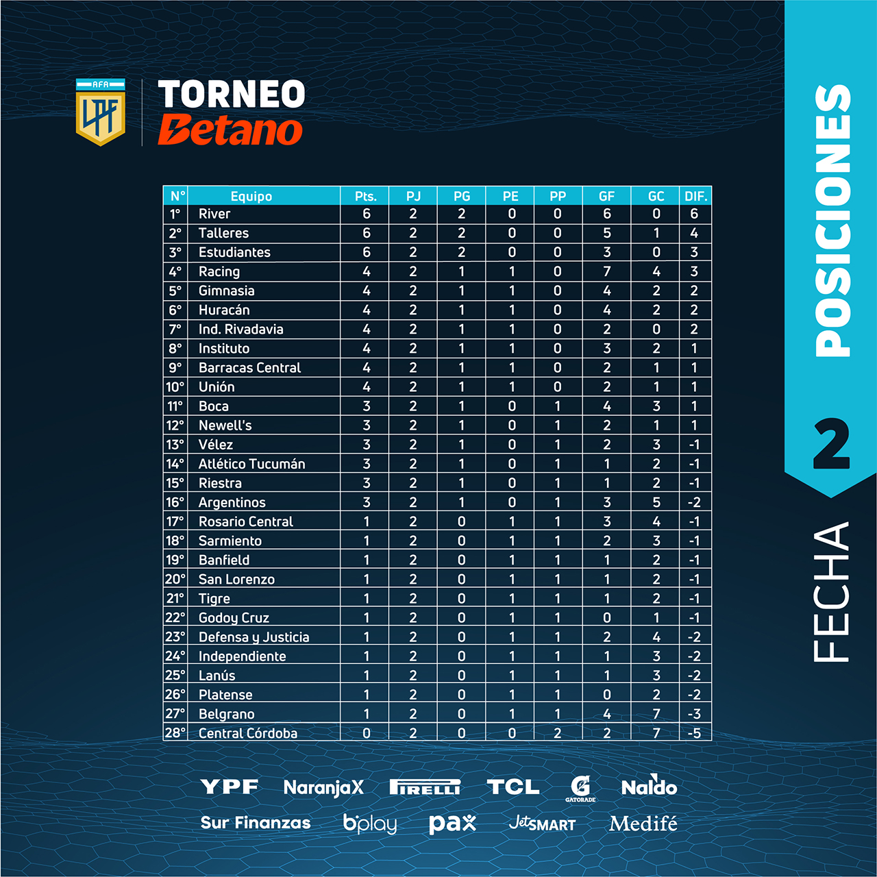 Ailleurs, Banfield et Huracán ont fait match nul 1-1, tandis que Talleres a disposé tranquillement du Decano à Córdoba, 2-0. Un match très divertissant a opposé Defensa y Justicia à Gimnasia. Malgré le score de 1-1, Defensa a attaqué sans relâche, offrant aux spectateurs un superbe duel attaque-défense tout au long de la rencontre. Instituto et Unión se sont quittés sur un match nul 1-1, Santiago Rodríguez inscrivant un superbe but d'environ cinquante mètres. Estudiantes a remporté son duel face à Riestra à La Plata 2-0, San Lorenzo n'a pas pu faire mieux qu'un match nul 1-1 au Nuevo Gásometro et Central - Tigre s'est terminé sur un score de 1-1. Pour clôturer la journée, Vélez s'est imposé chez lui 1-0 face à Newell's, grâce à un but de l'inévitable Brian Romero. Au programme ce week-end : un alléchant Argentinos - River, suivi d'un Boca - Talleres qui promettent des étincelles.