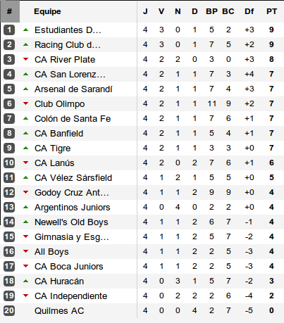 La quatrième journée aura cependant confirmé la lente glissade d'Independiente. Écrasé par Arsenal, El Rey de Copas enchaîne un quinzième match sans succès et se retrouve aux portes des barrages. Dépassé cette semaine par River, Independiente ne compte plus que neuf points d'avance sur Huracán, onze sur Tigre. Vu les dynamiques actuels, un tel écart pourrait fondre comme neige au soleil
