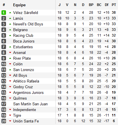 Ce titre, Vélez le doit également à River. Les Millonarios, en pleine transition avant la prise en main de Ramon Diaz, écartent un Granate peu inspiré et qui, sans doute tétanisé par l’évènement, n’aura pas montré grand-chose. Lanús se fait ainsi rejoindre au général par Newell’s et Belgrano vainqueurs respectifs de Rafaela et de Tigre mais surtout perd tout espoir de qualification pour la prochaine Libertadores. Les quatre qualifés, qui accompagneront Tigre, finaliste de la Sudamericana, seront Vélez, Arsenal, Newell’s et Boca.