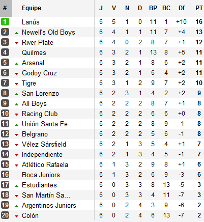 Derrière, Arsenal s’impose devant San Martin, Argentinos s’offre un nouvel entraîneur avec le roi de la controverse Ricardo Caruso Lombardi et décroche son deuxième point du tournoi (le deuxième à l’extérieur) sur le terrain d’un Boca toujours aussi poussif. Tout en bas, Unión, annoncé condamné, semble enfin décoller en allant chercher une précieuse victoire sur le terrain de Tigre et pourrait se mettre à rêver à un miracle.