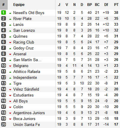 Demi-finaliste de la Libertadores, la Lepra de Tata Martino aura écrasé la concurrence lors du Torneo Final. Au point de décrocher le titre au soir de la 18e journée et ainsi s’offrir le luxe de terminer en roue libre. Ce titre vient naturellement saluer une formation qui a dominé la saison 2012-2013 et peut désormais se préparer sur ses deux derniers objectifs : la finale du championnat face à Vélez le week-end prochain puis la demi-finale de Libertadores. Deux objectifs majeurs pour un club qui ne sait pas s’il parviendra à retenir son technicien convoité par plusieurs clubs espagnols (Malaga, la Real Sociedad et même dit-on, le Real Madrid qui serait venu sonder) et qui avait annoncé qu’il ne poursuivrait pas après la fin du tournoi. Reste qu’avec le titre de champion de Primera B décroché par Rosario Central, ce début d’année 2013 a de fortes couleurs rosarina.