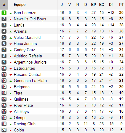 Il faut probablement remonter à l’Apertura 2008 pour trouver tournoi argentin aussi indécis. A l’époque, Tigre, San Lorenzo et Boca s’étaient entre-déchirés lors d’une triangulaire finale pour déterminer l’identité du champion. 5 ans plus tard, si on est encore loin de l’idée d’un triangular, la 16e journée de l’Inicial 2013 est venue ajouter une dose supplémentaire de suspense.
