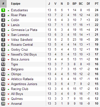 Reste que depuis, les Millonarios ont gâché les occasions qui leur étaient offertes de prendre les commandes (on pense notamment à ce match à Belgrano – le peuple millonario vous parlera longtemps du but fantôme qui fît perdre son club), laissant Colón et Estudiantes jouer les premiers rôles alors que San Lorenzo, le Gimnasia, Vélez et Lanús restaient en embuscade.