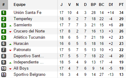 A trois journées de la fin, le suspense est total sur les autres terrains. Temperley, actuel second, ne dispose plus que de deux rencontres à disputer et compte six points d’avance sur Tucumán et Huracán, respectivement cinquième et sixième. Si le Globo dispose d’une rencontre pour s’immiscer dans le top 5, les six points d’avance des Gasoleros leur permettent d’entrevoir la promotion en cas de succès ce week-end face à All Boys (qui jouera sa toute dernière chance de pouvoir encore y croire). Huracán, totalement transformé depuis les évènements du début du mois (voir Argentine : la goutte d'eau), reste sur trois victoires. Entre eux, Sarmiento et Crucero del Norte ne sont plus très loin, comptant respectivement cinq et trois points d’avance sur Tucumán.