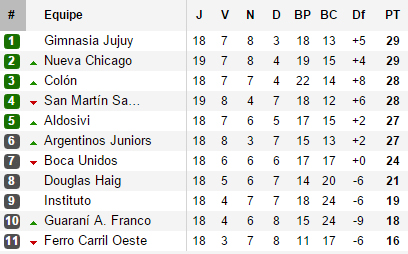 Si deux équipes du groupe B sont déjà promue, la situation du groupe A est dantesque. A force de ne plus gagner, les leaders Jujuy, Nueva Chicago et San Martin ont vu plusieurs équipes se rapprocher au point que désormais, l’écart entre les six premiers n’est que de deux points, Boca Unidos septième n’étant qu’à trois points du cinquième. C’est dans cette mêlée que se trouve l’Argentinos de Riquelme. Face à San Martin, les hommes de Pelusso ne devaient pas se rater sous peine de compromettre leurs chances de montée et ont assuré l’essentiel : trois points et un retour dans le bon wagon. Reste qu’à l’heure actuelle, Argentinos n’est pas en position de monter. Devant lui, Aldosivi, qui compte le même nombre de matchs, a pris place dans le top 5 en s’imposant face à l’ancien détenteur de cette place, Boca Unidos. A l’heure actuelle, on se dirige vers un match d’appui entre les deux équipes. Tout reste donc totalement imprévisible dans ce groupe, la Nueva Chicago et San Martin étant les deux équipes les plus en danger étant donné qu’il leur reste un match à disputer quand les autres concurrents en ont encore deux.