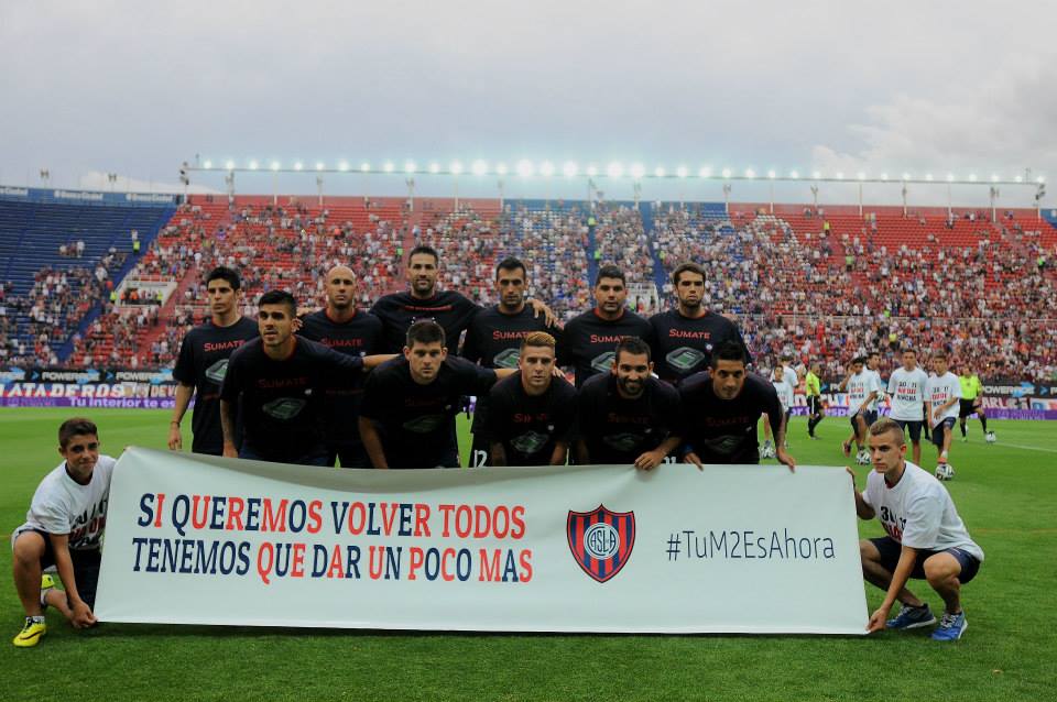 Les joueurs de San Lorenzo apparaissent avec un t-shirt et une banderole concernant la « Vuelta a Boedo » (voir L'héroïque combat de San Lorenzo contre Carrefour et la dictature) et donnent le coup d'envoi de la rencontre. Pour tout vous dire, on s'ennuie ferme en ce début de rencontre et même si Buffarini et Veron combinent bien sur le côté droit de San Lorenzo posant beaucoup de problème à la défense d'Estudiantes, aucune occasion franche n'est à se mettre sous la dent. De son côté le club de La Plata est méconnaissable et est bien loin de son niveau de jeu habituel qui a notamment empêché le River Plate de Gallardo de battre le record historique du club du nombre de matchs sans défaites (voir Argentine : Olimpo relance tout). Heureusement la hinchada de San Lorenzo nous assure un superbe spectacle en tribune. Le très riche répertoire des fans Azulgranas est de sortie et les chants comme « Soy de San Lorenzo si senor » (Je suis de San Lorenzo, oui Monsieur) ou encore « Dicen que estamos todos de la cabeza » (Ils disent qu'on est tous cinglés) nous rappellent qu'ils proviennent des esprits musicaux venant de Boedo inspiré des plus grands comme José Betinoti, Homero Manzi (La légende prétend que le tanguero Homero Manzi aurait composé le fameux morceau “Sur” dans l’ancien “Café del Aeroplano”, situé à l’angle de San Juan et de l’avenue Boedo), Jose Gonzalez, Castillo, Catulo mais aussi de Piana. On trouve aussi dans les paroles la touche poétique de nombreux littéraires du « Grupo de Boedo » (entre politique et littérature sociale, le Groupe Boedo était composé de jeunes écrivains prolétaires dirigés par Antonio Zamora dans les années 1920). Une inspiration que tous ces artistes, puis ces supporters ont été cherchés dans les rues de ce quartier si typique. Même un certain Diego Armando Maradona avait déclaré à l'époque à quelques journalistes dans la Bombonera après un Boca Juniors – San Lorenzo « San Lorenzo possède la hinchada la plus créative et ingénieuse » et cela se vérifie encore aujourd'hui. Nous sommes désormais à la 35ème et toujours rien d'excitant sur le terrain, c'est le moment que choisi La Gloriosa pour passer la seconde et entonner un air sur leur combat et le retour de leur stade à Boedo d'une puissance incroyable.