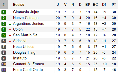 Il pourrait également être fortement question de desempate dans le groupe A où, à 90 minutes de la fin, personne n’est encore sûr de monter. En se neutralisant, Jujuy et Nueva Chicago se font rejoindre en tête par Argentinos, précédant Colón et San Martin de deux points, Aldosivi et Boca Unidos de trois points. La tension sera donc maximale dans le groupe avec notamment un Colón – Boca Unidos et un Aldosivi – Jujuy. Imaginez que Boca Unidos et Aldosivi s’imposent, on aurait alors 4 équipes à égalité de point. Si, en même temps, Argentinos et San Martin s’imposent, il restera alors trois places à distribuer entre ces quatre ex-aequo. Et en Argentine, on ne sépare les égalités qu’à coup de matchs de barrages…autant dire que le groupe A est peut-être encore loin de se trouver une conclusion…