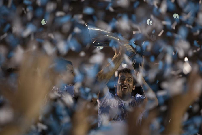 Coup de sifflet final, dans un délire complet. Après 13 ans d'attente le Racing l'a fait, le Racing est champion d'Argentine ! Tout le monde se précipite sur Diego Milito, grand artisan de cet exploit et auteur de six buts dans ce tournoi, pour le porter en triomphe. Ce dernier, en larmes, déclarera « avoir accompli un de ses rêves les plus fous ». La remise du trophée est accompagnée du traditionnel « Dale campeon » (Allez champion) et un chant un brin provocateur envers le rival River Plate « Me parece que River no sale campeón, sale Racing, sale Racing sí señor » (Il me semble que River n'est pas champion, c'est le Racing, c'est le Racing oui Monsieur). Le stade se vide tranquillement mais la folie ne fait que commencer. Car la Barra du Racing a une idée folle : regagner le centre-ville à pied ! 10 km en empruntant l’autoroute. Nous nous retrouvons avec eux à pied sur l'autoroute pendant une heure de trente de marche accompagnée de pétards et d'artifices, au milieu des voitures. Au bout du chemin, l’Obélisque où la fête ne fait que commencer. Elle durera toute la nuit. L'Obélisque de Buenos Aires… Là où tout a commencé quelques heures plus tôt. Fin d’une journée que seul le football argentin a le secret de nous délivrer…