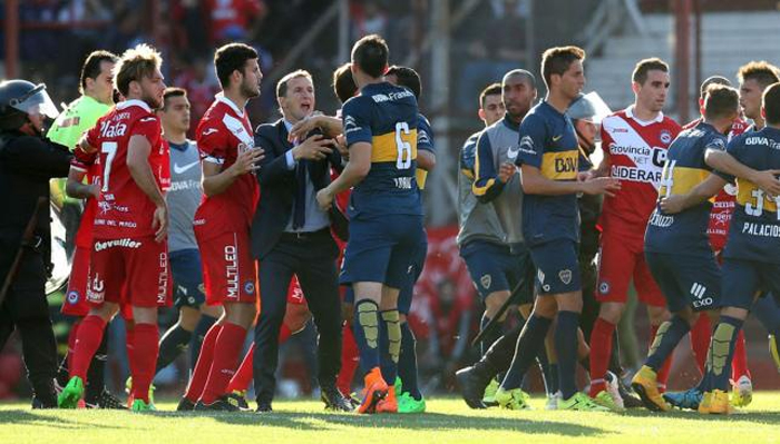 Beaucoup d’encre aura et n’a pas fini de couler après cet Argentinos – Boca. Si l’affiche paraissait à première vue déséquilibrée sur le papier, le regain de forme du Bicho (deux victoires, un nul) a longtemps été confirmé face à un leader dont le jeu a longtemps été terne, ses milieux apparaissant souvent désorientés et ses offensives ne reposant que sur les exploits du trio Tevez – Calleri – Palacios. Car les meilleures situations étaient pour les locaux qui se montraient plus agressifs et plus déterminés, Rinaldi se procurant les deux plus belles situations du premier acte. Puis venait la première polémique.