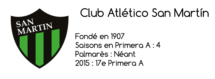 Dernier candidat à un relatif anonymat, San Martin. Balayé au premier tour de la Liguilla Pré-Sudamericana par le Gimnasia, le Santo renouvelle totalement son groupe au point de remplir les colonnes des tableaux de transferts comme personne en Primera Division. Le renouvellement se poursuit jusqu’au banc de touche puisque le club de San Juan se voit désormais dirigé par Pablo Lavallén dont ce sera les grands débuts sur un banc de touche.