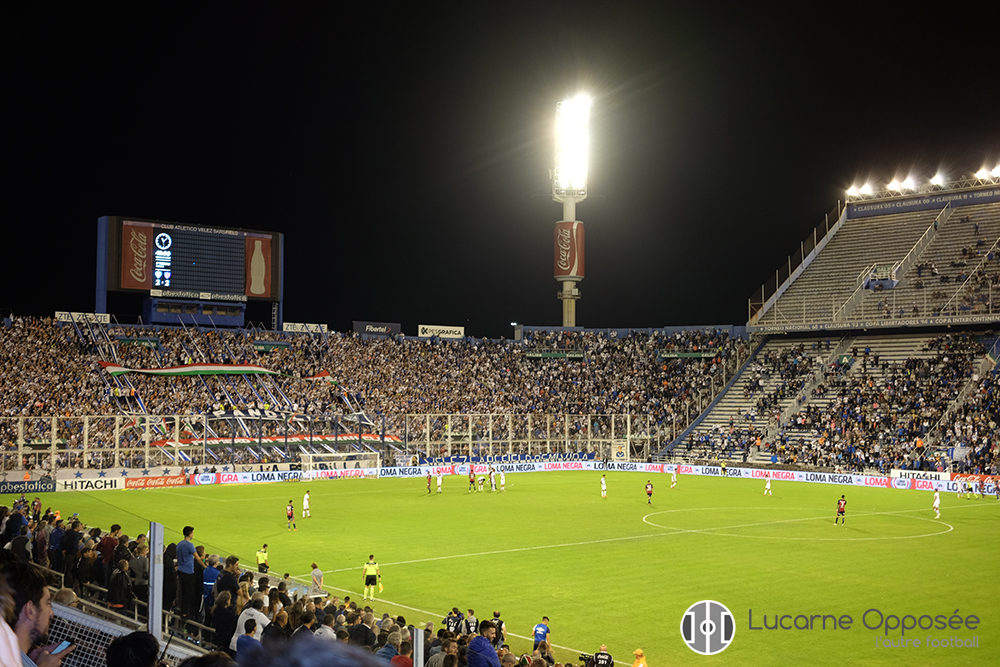 Le décor est posé. À quelques minutes du coup d'envoi, les chants et la pression montent. La horde de maillots au scapulaire se presse dans l'immense stade José Amalfitani – près de 50 000 places - qui fête cette année ses soixante-quinze ans. Malgré une grève de bus et l'horaire (21h15) un lundi, près de 20 000 personnes sont présentes. La popular, pleine à craquer, est prête pour deux heures de chorégraphies et de chants. Sur le terrain, les locaux alignent une équipe très jeune et six joueurs formés au club. Emmenés par leur capitaine, Fabian Cubero, plus de 600 matchs pour le Fortín, les hommes de Heinze entament la partie avec l'intensité d'un Clásico. Les premiers contacts sont rugueux et quatre cartons jaunes sont distribués dans le premier quart d'heure. Sous l'impulsion des deux espoirs, Santiago Caceres et « El Monito » Matias Vargas, le pressing imposé par Vélez étouffe San Lorenzo. El Fortín trouve l'ouverture grâce à une passe en profondeur lumineuse du dernier nommé pour la star de l'équipe, Mauro Zárate qui conclut du gauche. Après 30 minutes haletantes, le stade s'embrase tandis que le bouillant Heinze est rappelé à l'ordre sur son banc. Les « vamos Fortínero » résonnent dans le stade.