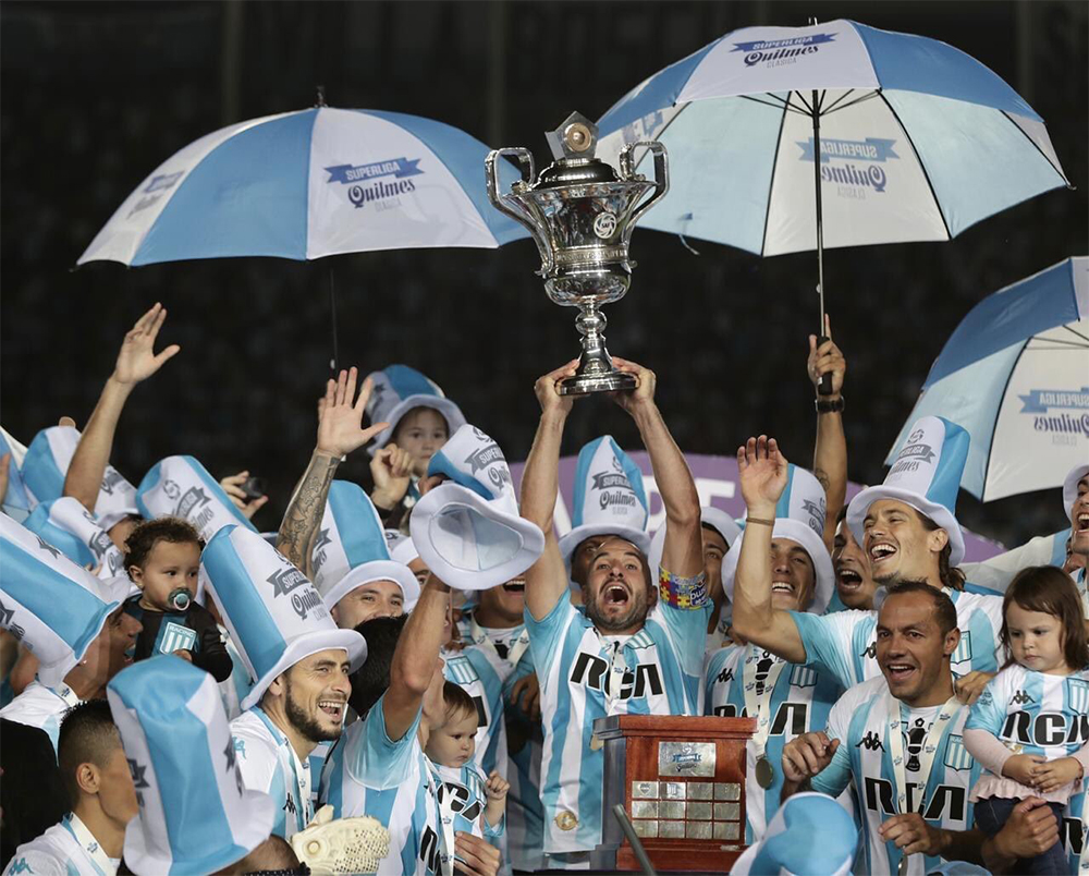Sacré champion d’Argentine la semaine passée, Racing a profité de la réception de son dauphin Defensa y Justicia pour fêter son tire, communier avec les siens et honorer sa légende. Le tout dans un match débridé où chaque équipe a cherché à s’imposer. Les festivités ont commencé bien avant la rencontre dans un Cilindro déjà plein deux heures avant le coup d’envoi. Les acteurs pénètrent sur la pelouse sous le célèbre chant de la hinchada de la Acade « Muchachos, traigan vino juega la Acade » et débutent par un pasillo mutuel entre deux équipes qui se respectent malgré les vingt-cinq batailles acharnées qu’elles se sont livrées. Une entame de match fidèle aux principes de Chacho Coudet (que Diego Milito espère prolonger) et Sebastián Beccacece. Du jeu, des attaques en nombre, des occasions de buts, de l’intensité, le tout avec une grande qualité technique. Mais à la quinzième minute la rencontre va se figer, les pendules vont s’arrêter, le temps d’offrir un hommage grandiose à Lisandro López. Il n’est pourtant pas question de fin de carrière. Non le Racing (hinchas comme dirigeants) a simplement tenu à remercier le joueur, le buteur, le capitaine, l’homme. Grand artisan du titre avec dix-sept buts (meilleur buteur du championnat), Licha est surtout le leader qui harangue, qui se bat sur chaque ballon et qui recadre le premier équipier qui flanche. Il permet à son équipe de rester concentrée sans jamais perdre le fil d’une rencontre.