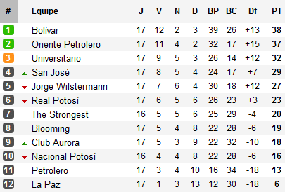Un point en deux matchs, un carton subit face à l’Aviador Jorge Wilstermann en guise de dernière rencontre, Bolìvar n’avance plus en tête du tournoi bolivien. Ecrasé 5-0, la Academia risquait de se voir dépassée par son principal concurrent : Oriente Petrolero. Mais lors du Clásico Cruceño marqué par le but exceptionnel du franco-argentin Hugo Bargas, Oriente Petrolero n’a réussi qu’à prendre un tout petit point. Conséquence, si l’écart reste minimal en tête, Universitario pourrait bien venir se mêler à la lutte.