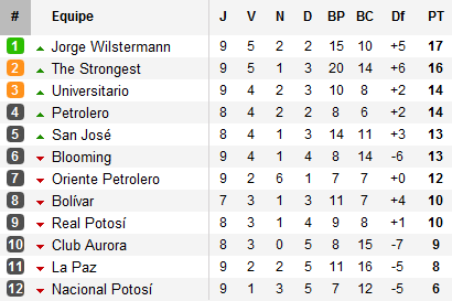 Derrière, les écarts restent resserrés. Universitario et Petrolero s’imposent sans trembler et restent à trois points du leader. El Surazo Verde pourrait même profiter de la mise à jour du calendrier pour revenir sur Wilstermann en cas de succès sur le terrain du Real Potosí, ce qui donnerait un cas de figure assez inédit avec les deux promus aux commandes de la première division après 9 journées.