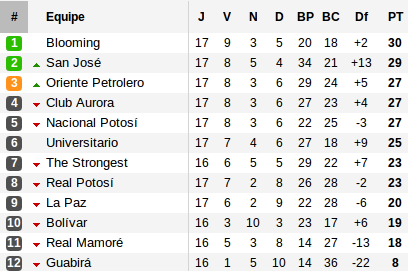 Ce fut le cas : San José écrase Bolívar (avec un doublé de Carlos Saucedo, meilleur buteur du tournoi avec 13 buts en 17 matchs), Oriente Petrolero punit Aurora (4-1). Conséquence au classement, si Blooming conserve la tête, le leader ne compte plus qu’un point d’avance sur San José, trois sur le trio Oriente Petrolero, Aurora, Nacional. Autant dire que le Clásico Cruceño Blooming – Oriente Petrolero du week-end s’annonce terrible.