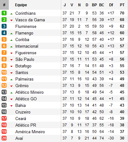 Un nul et le Corinthians décrochera le titre national la semaine prochaine. Seule certitude au soir de la 37e journée : seul Vasco peut encore l'en empêcher.