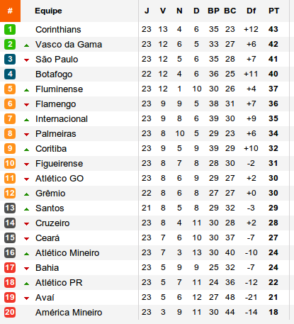 Le week-end prochain s'annonce comme un premier tournant avec le duel Botafogo – Flamengo et l'énorme Corinthians – Santos. Le Peixe, qui ne perd plus, et son incroyable buteur providence Borges (auteur du seul but de la rencontre face à Cruzeiro, son seizième en dix-neuf matchs disputés avec Santos) se rapprochent des places qualificatives pour la Sudamericana.