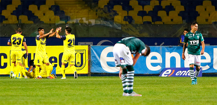 Autre grand vainqueur du bas de tableau, Antofagasta qui s’en est allé punir un Palestino qui n’avance plus en championnat et voit désormais sa place de qualifié en Sudamericana menacée. Menacée par O’Higgins qui joue également le titre, menacée enfin par un revenant, Universidad de Concepción. Après un début de tournoi compliqué, les hommes de Ronald Fuentes accueillaient les Wanderers en clôture de la journée avec la possibilité de se rapprocher de la tête en cas de victoire, les visiteurs étant venus tout simplement pour prendre les commandes du tournoi. Alfredo Arias avait prévenu ses troupes, il fallait se méfier d’un Campanil qui joue de mieux en mieux. Et si les contres du Decano, emmenés par Paulo Rosales s’avéraient dangereux, Carlos Muñoz se procurant une superbe opportunité à mi première période le scénario de la partie lui a donné raison. Car les hommes de Fuentes ont rapidement pris le contrôle de la partie, les vagues jaunes et bleues s’abattant régulièrement sur un Viana transformé en pompier de service mais qui ne pouvait rien faire sur l’ouverture du score de Camargo à dix minutes de la pause. Au retour des vestiaires, le scénario restait inchangé, passant souvent par les couloirs, la U de Conce se procurait les plus belles situations et décrochait ainsi une victoire des plus méritée qui prive les Wanderers de la tête. Mieux, elle relance totalement le suspense. Car à trois journées de la fin, si Concepción double Palestino à la table annuelle, le Campanil resserre surtout les rangs du Clausura. Actuellement cinquièmes, les hommes de Fuentes ne sont désormais qu’à quatre longueurs du leader Universidad Católica qui jouera la U le week-end prochain.
