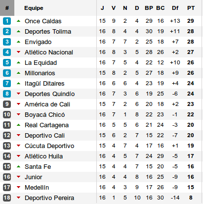 Avec deux journées cette semaine, la Liga Postobon devait clarifier la situation. Si la lutte pour les play-offs concernent désormais 13 des 18 clubs, Once Caldas se voit offrir l'occasion rêvée de s'échapper en tête.