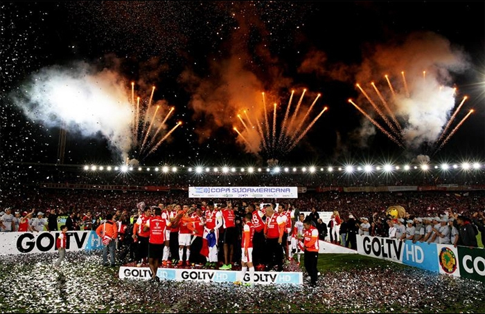 Le rayon de soleil colombien est donc venu des compétitions continentales. Finaliste malheureux de la Sudamericana 2014, l’Atlético Nacional, alors encore sous les ordres de Juan Carlos Osorio faisait office d’outsider. Tranquilles vainqueur de leur groupe, les Verdolagas vont finalement passer à un but d’un quart de finale face au futur finaliste, éliminé par Emelec faute de n’avoir su faire sauter le verrou équatorien au retour (lire Atlético Nacional 1 - 0 Emelec). Du côté de Santa Fe, le parcours aura été similaire sous les ordres de Gustavo Costas, les Cardenales craquant au retour de leur quart de finale face à un International alors injouable (lire International 2 - 0 Santa Fe). Mais cette défaite, probablement une conséquence du manque d’expérience dans la gestion des grands rendez-vous, Santa Fe va s’appuyer dessus et, profitant de l’arrivée de pragmatique Gerardo Pelusso, va s’en servir pour aller réussir l’exploit de l’année, celui de remporter la Sudamericana. Certes les Cardenales de Pelusso auront été loin d’être l’équipe la plus intéressante à voir jouer (la finale ayant été l’une des pires de l’histoire), la formidable machine utilisant les triangles, le jeu sur les ailes et la capacité de perforation des Morelo et autres Quiñonez cédant place à une équipe physique, regroupée et misant sur les contres et les phases arrêtées pour générer du danger. Certes, Santa Fe est toujours passé sur le fil à chaque tour, allant même jusqu’à réussir le hold-up de l’année face à Luqueño. Mais 2015 restera dans l’histoire du football colombien. Un an après l’échec de l’Atlético Nacional, Santa Fe devient le premier cafetero à décrocher la Sudamericana (lire Copa Sudamericana 2015 : Santa Fe, el primer campeón). Preuve s’il en fallait qu’au niveau des clubs, la montée en puissance des colombiens se poursuit.