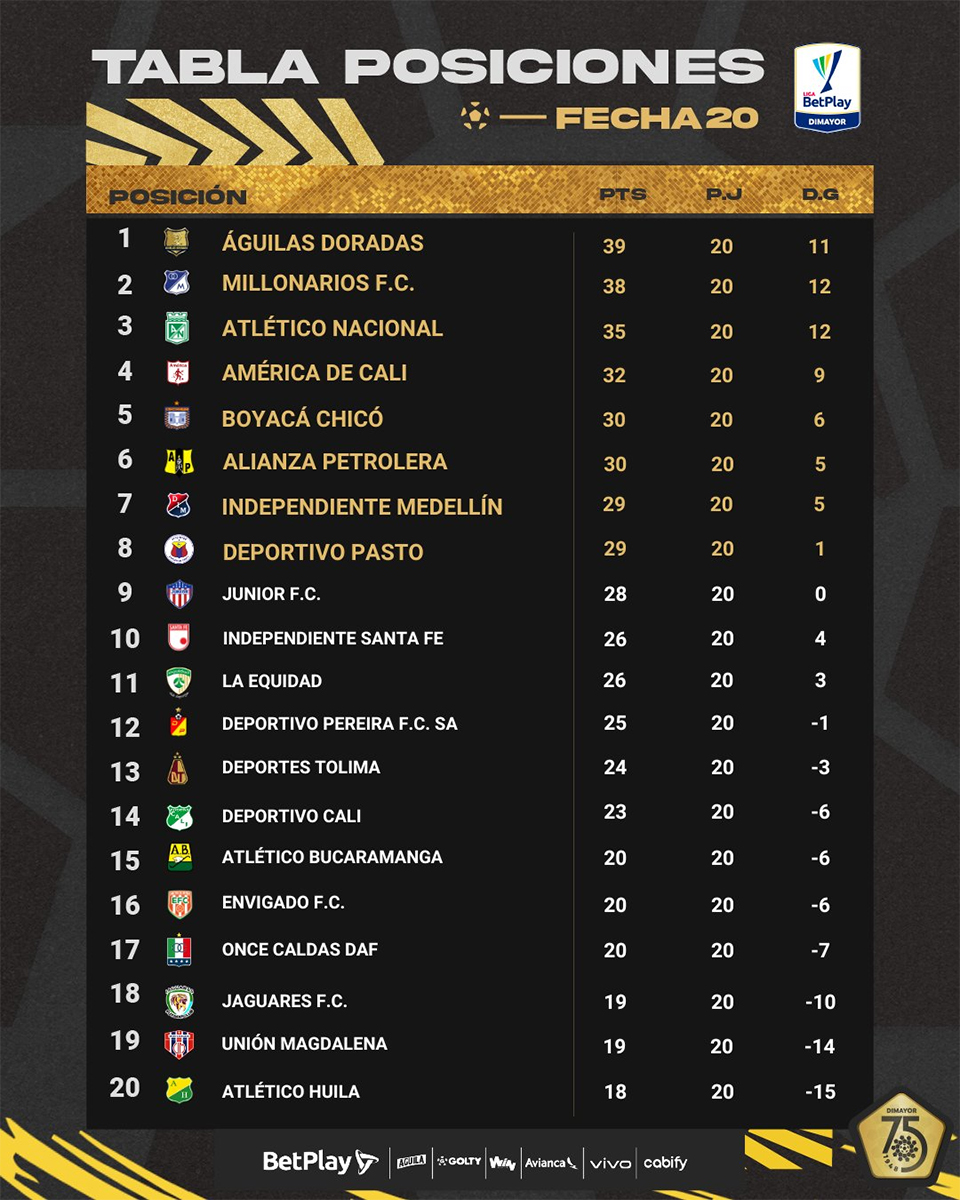 La saison régulière et son calendrier absolument infernal s’est achevée en milieu de semaine pour laisser place aux quadrangulaires et son calendrier non moins infernal. Une première phase au cours de laquelle les trois gros, Millonarios, l’Atlético Nacional et l’América, sont passés plus ou moins facilement, mais qui a laissé le grand favori, Junior, sur le carreau dans des circonstances qui interrogent. Échec cuisant aussi pour Santa Fe. Le champion sortant ne sera pas de la partie non plus, tout comme Tolima.