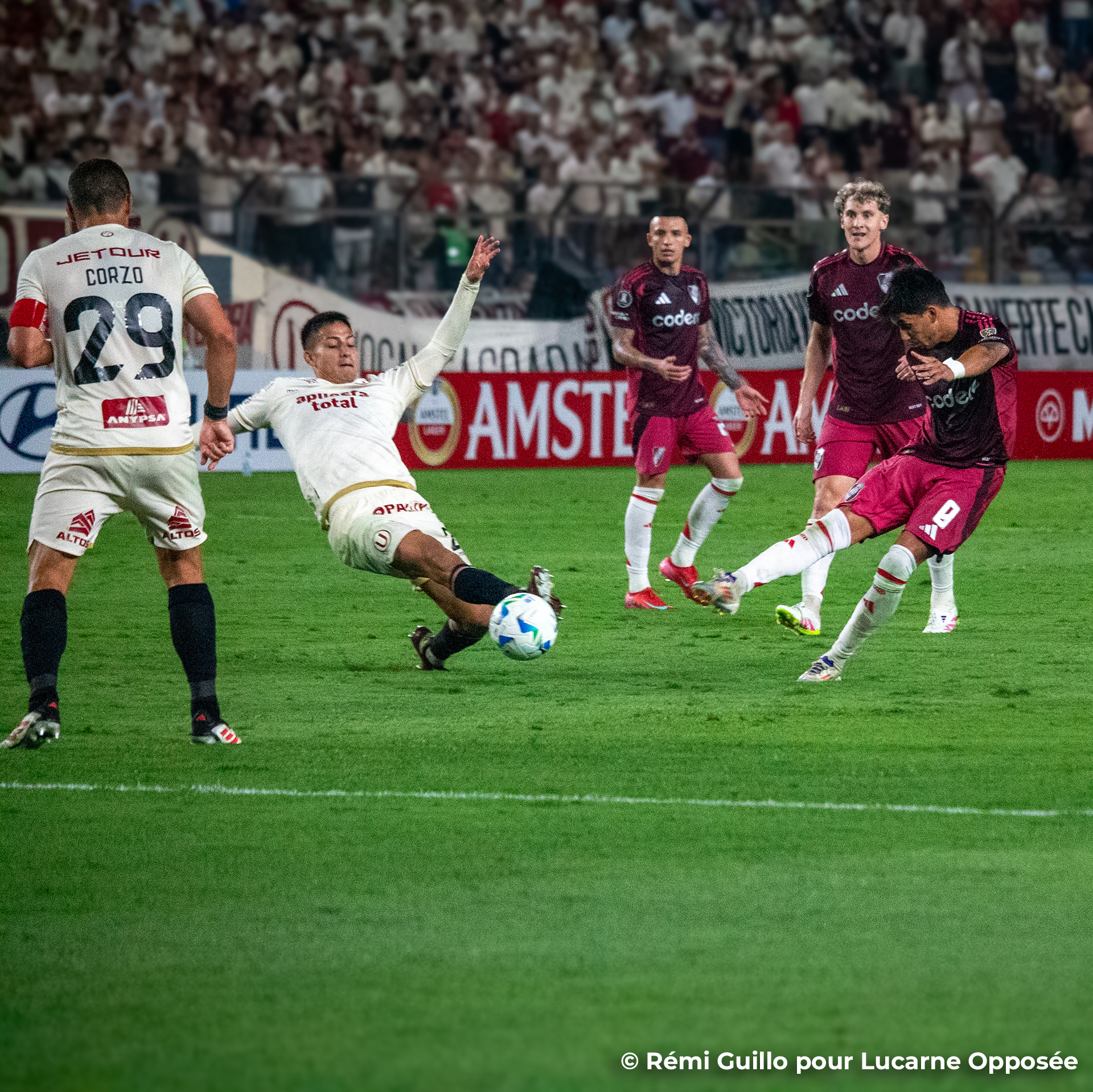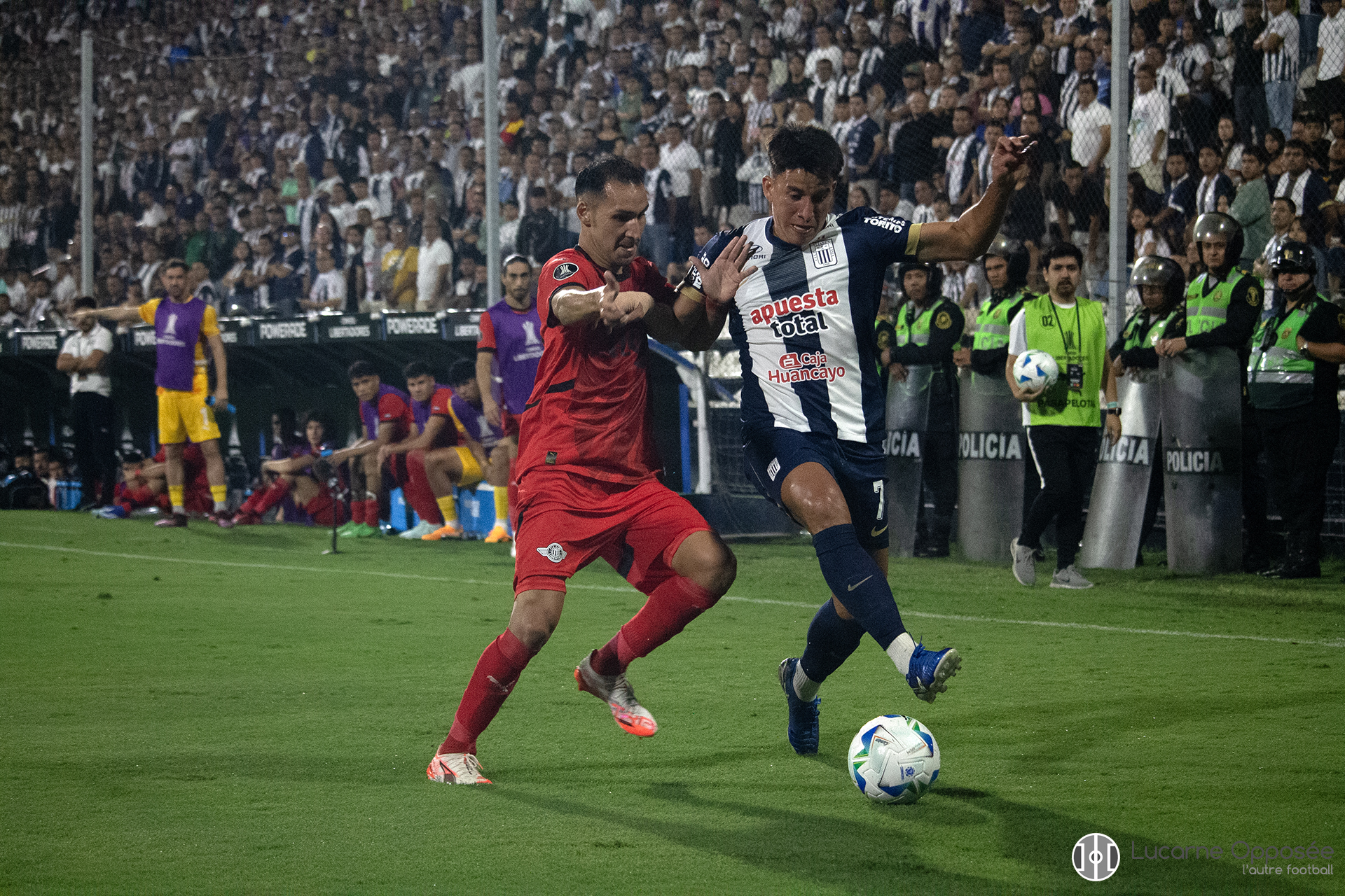 Les deux géants péruviens, Alianza Lima et Universitario, ouvraient leur campagne de Libertadores avec vingt-quatre heures d’écart. Tous deux ont subi le même sort. Premier en lice, les Blanquiazules de l’Alianza Lima voulaient surfer sur leur formidable campagne de qualification à la phase de groupes. Malheureusement pour la bande à Paolo Guerrero, entré peu avant l’heure de jeu, les visiteurs du soir n’ont pas failli à leur dynamique de début 2025. Le leader invaincu de l’Apertura paraguayen, Libertad, a globalement dominé la rencontre, faisant de Guillermo Viscarra une machine à retarder l’échéance quand l’Alianza peinait à se montrer dangereuse. Une passe parfaite d’Hugo Martínez a permis à Gustavo Aguilar de logiquement débloquer la situation en début de seconde période avant que les choses se compliquent après l’exclusion du passeur décisif qui a laissé les siens en infériorité pendant près d’une demi-heure. Sans dégâts toutefois, notamment grâce à deux interventions de Rodrigo Morínigo, et Libertad débute donc par un succès.